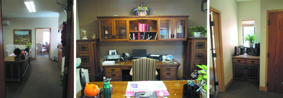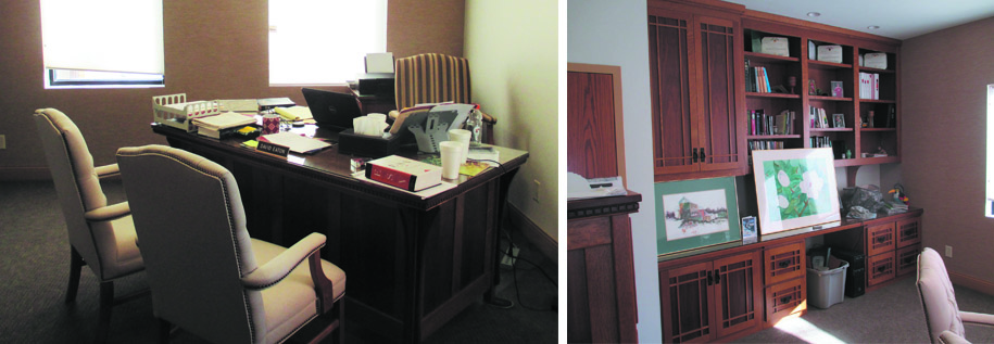 The renovation of this church modernized the entry hall and office area, creating a welcoming environment for employees and visitors. Work in this renovation included new finishes, lighting, furniture, and minor MEP updates. New desks, built-ins, and file cabinets were custom crafted in Indiana.
