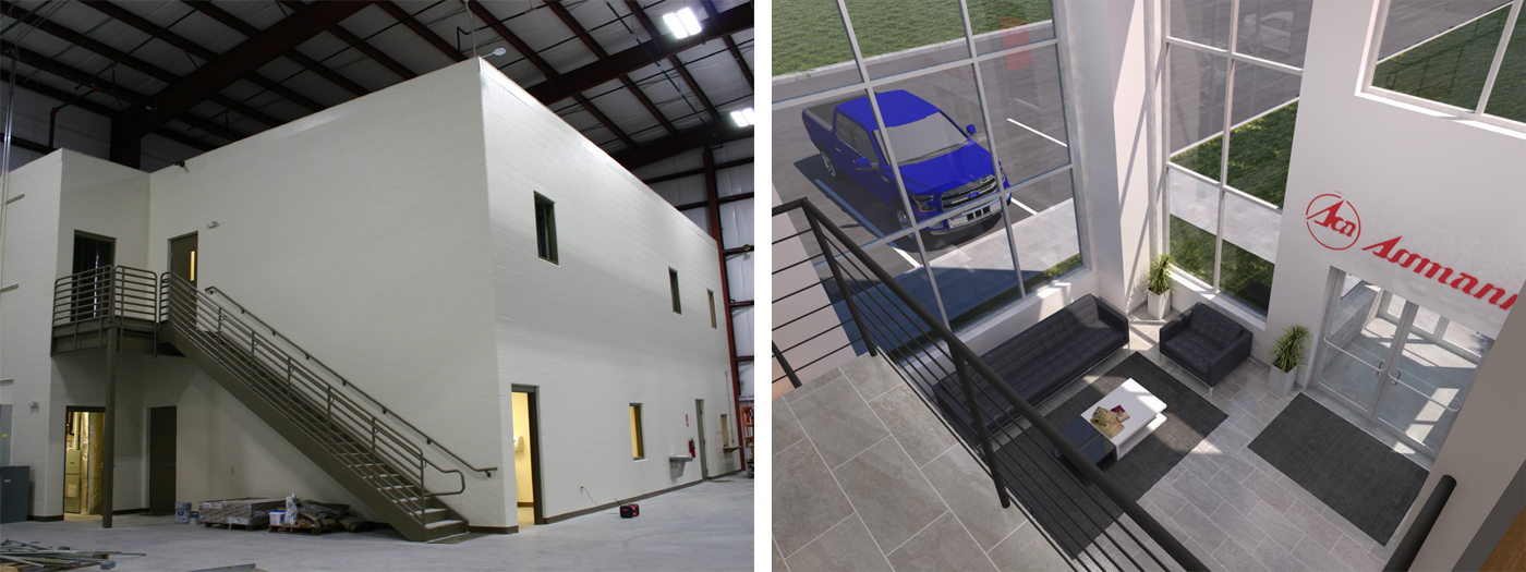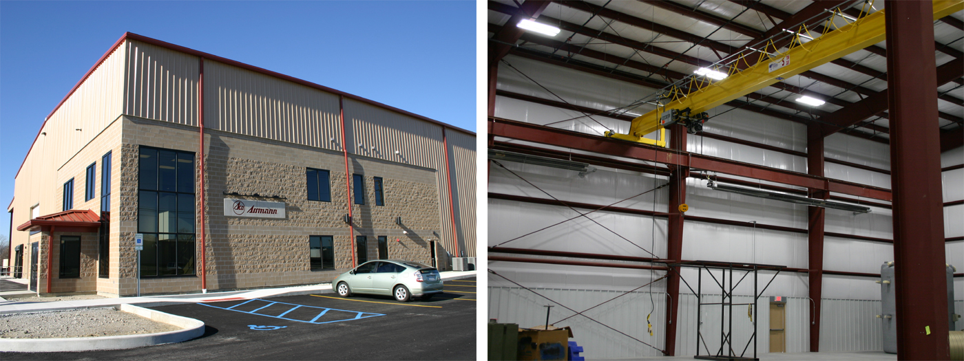 A 20,236 square feet facility with 15,640 square feet of warehouse space and 4,676 square feet two (2) story office building for Assmann Corporation of America is located in Garret, Indiana. The facility serves as a warehouse and testing facility for the company’s plastic storage tanks (ranging from 40-1200 gallons in size). Warehouse features include: two (2) hoist systems, two (2) loading docks, and hydrotest area. The two (2) story office space consists of a two (2) story lobby, private offices, conference rooms, break room, and employee restrooms.