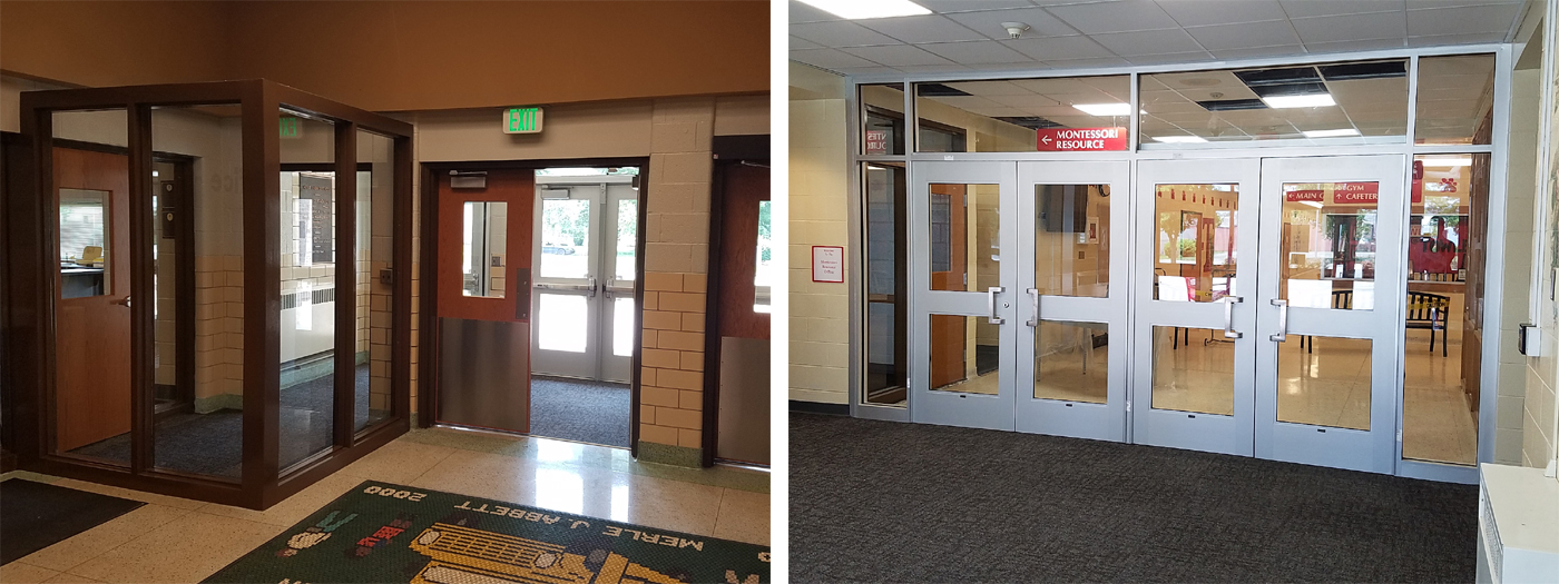 New secure entry vestibules at Abbett Elementary, Kekionga Middle School, Memorial Park Middle School, Northwood Middle School, Snider High School, South Side High School, and Towles Intermediate School will minimize risk and streamline the way visitors enter the building. The secure entry vestibules include the following: