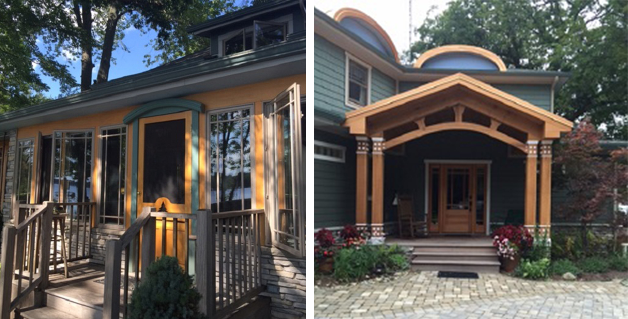 Serving as a secondary residence on Lake George in Coldwater, Michigan, this existing 1,650 square feet cottage was expanded to 3,950 square feet to accommodate a growing family’s needs. The renovation / expansion included a new primary entry that opens up into a new foyer staircase, newly added office and exercise space, a renovated / modernized kitchen, newly added laundry space, added mechanical room space and equipment, an art studio, and a newly added first floor powder room. The second floor renovation included two (2) new guest bedrooms, a full bath with walk-in tile shower, and a built-in window seat and storage area. The renovation also included a new two car garage with work area, new roofing system, andnew exterior stone, siding, windows, and doors. This eco friendly design that utilizes salvaged and used materials was made complete with new landscaping and IPE wood decks that frame the sensational Lake George view.