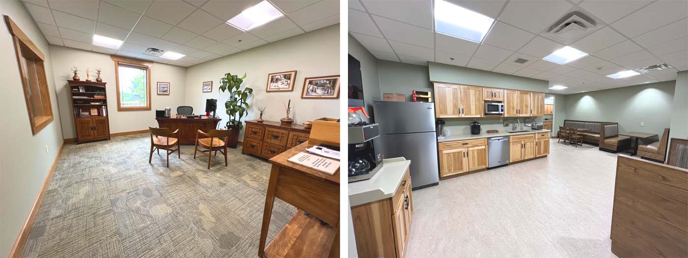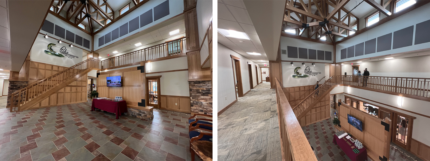 A new 22,200 square feet corporate office for Pike Lumber Company, is located in Akron, Indiana. The exterior of the building is constructed of SIPs (structural insulated panels) for both the walls and the roofs. The new building includes a front exterior patio, two-story interior atrium space with history wall, private offices, board room, conference / training rooms, breakrooms, restrooms, workrooms, and basement for storage. The building also showcases Pike's own hardwood for flooring, trim, casework, etc.