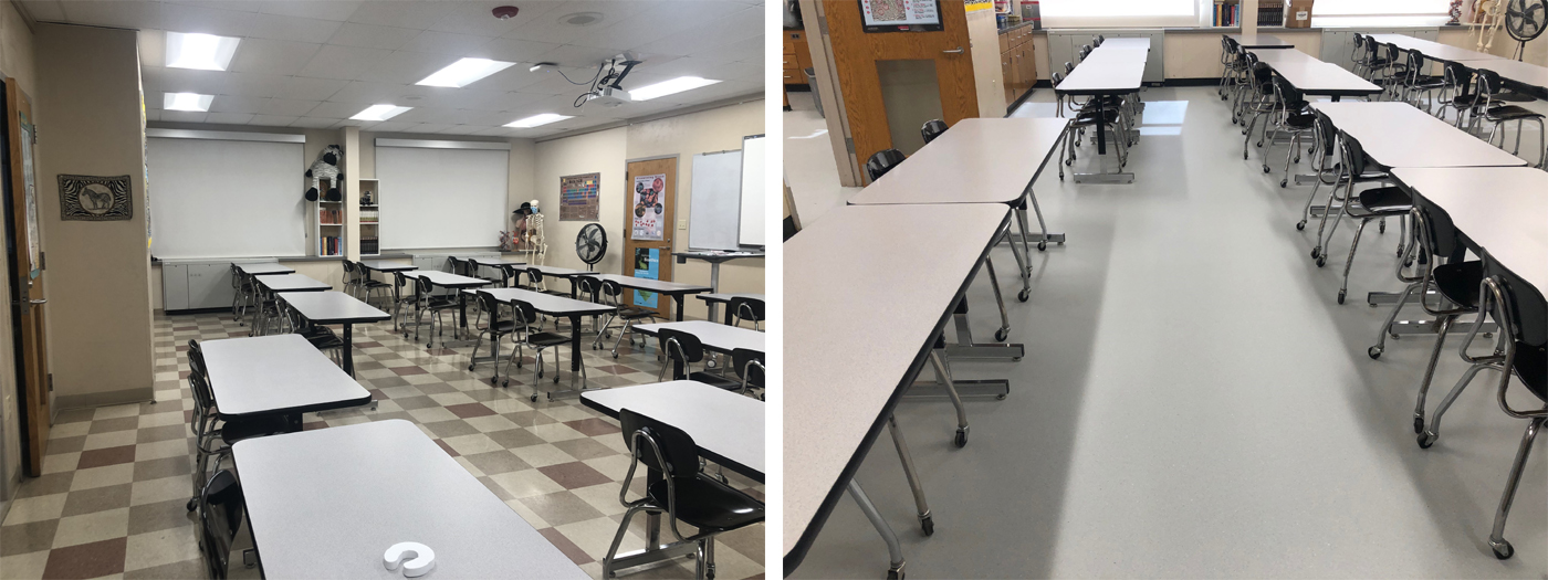 • New sheet vinyl in science, art, and agriculture classrooms.
