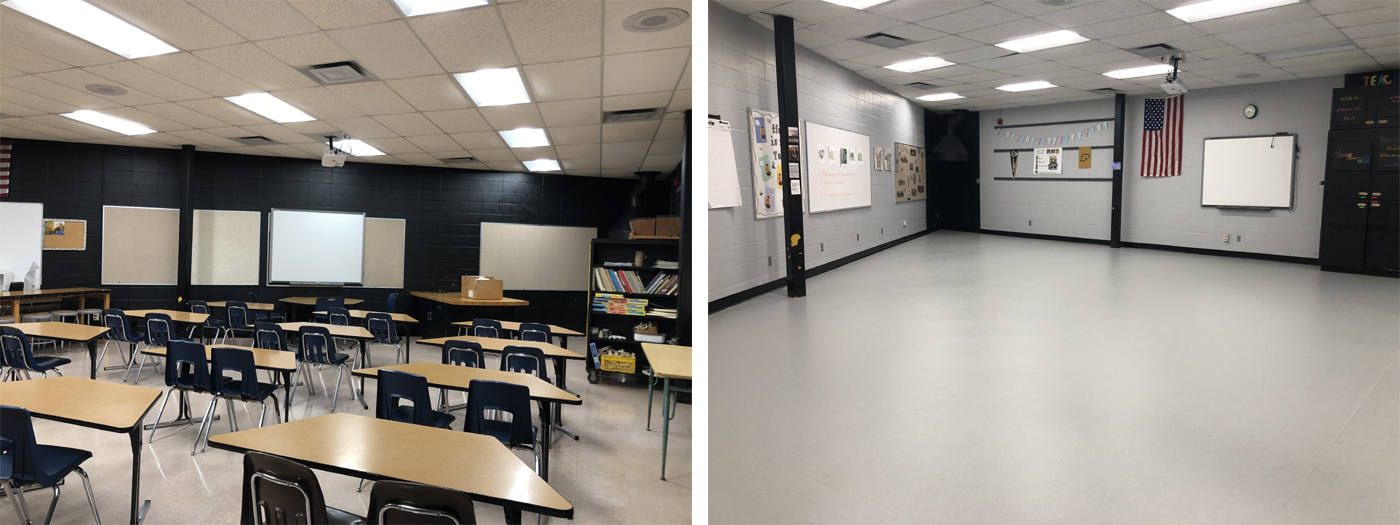 • New sheet vinyl in science, art, and industrial tech classrooms.