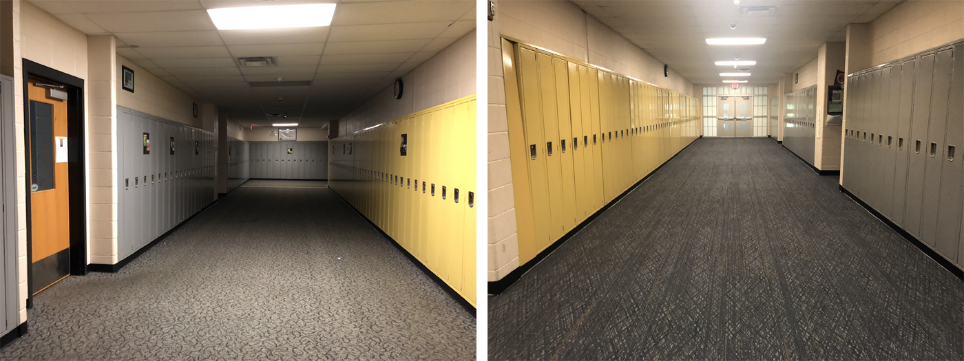 • New carpet in all classrooms, hallways, library, commons, and administration area.