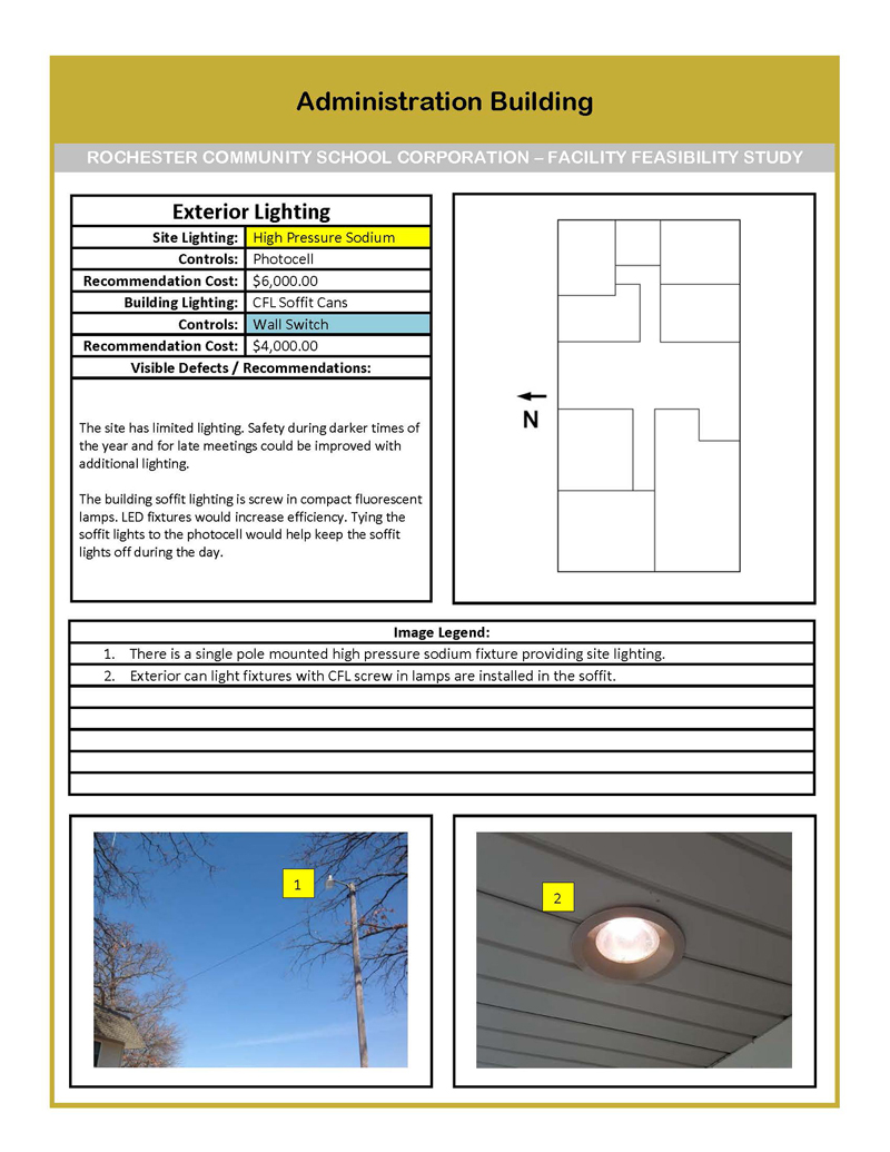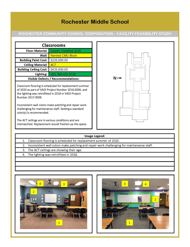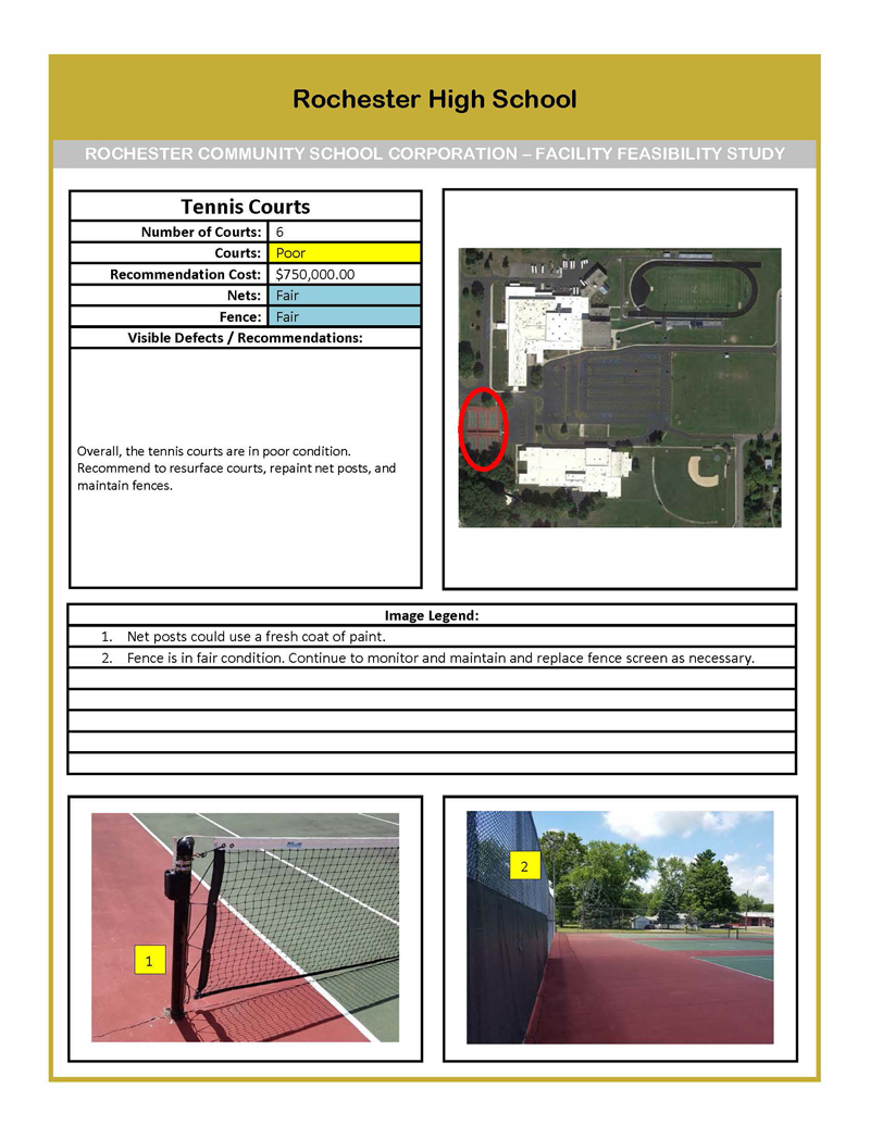 Viridian has been working with Rochester Community School Corporation (RCSC) since 2010. A Facility Assessment Report was generated for the Rochester Community School Corporation. The report assessed the quality and condition of six (6) facilities. Each facility was inspected, evaluated, and documented for issues including: roof systems, door systems, building envelope systems, interior finishes, gymnasiums, natatoriums, auditoriums, mechanical, electrical, data / telephone communication, parking, hardscapes, and playgrounds. The report included recommendations and probable cost estimates for each building system based on the collected data and observations. The assessment of six (6) buildings provided the Rochester CSC with the needed information for their future funding requirements needed to maintain their investments.